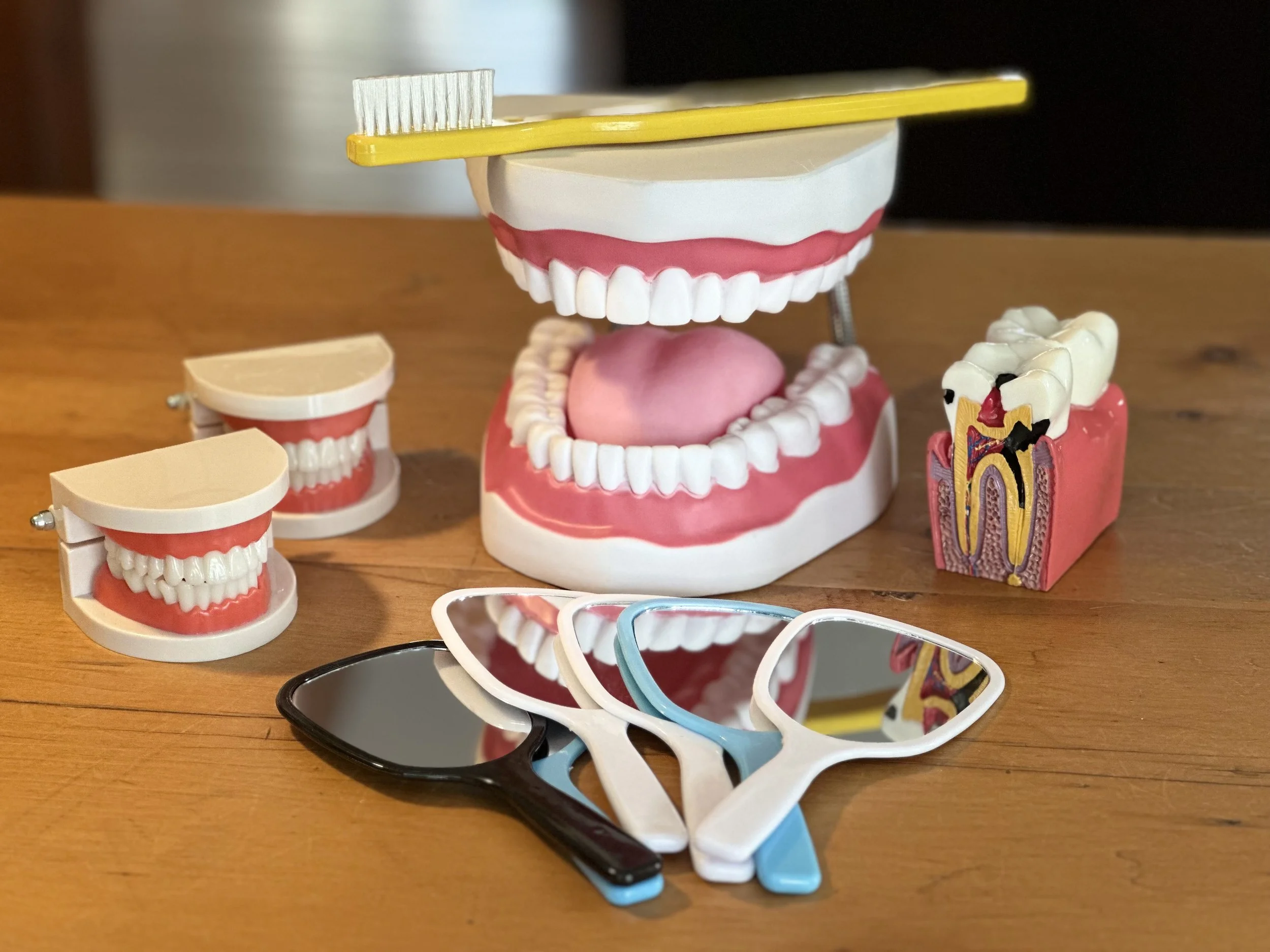 To support Patrick’s outreach, World Health Outreach shipped a set of visual teaching aids to Malawi—including a giant teeth demonstration model with toothbrush, hand mirrors for awareness, small teeth models, and a dental caries model showing tooth anatomy. These hands-on tools have become an invaluable resource in his oral health sessions, helping community members visualize and better understand proper oral hygiene practices.